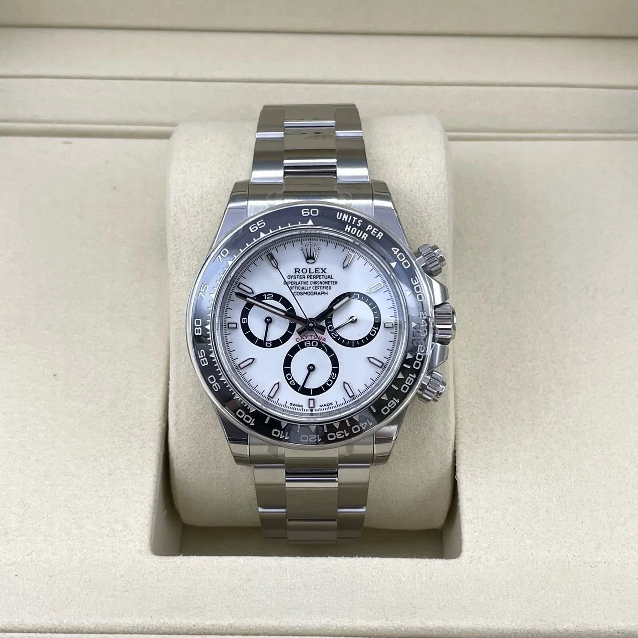 Le Rolex Daytona 126500 LN – édition 2024 en acier, cadran blanc – allie héritage sportif, modernité technique et élégance. Sa lisibilité, son mouvement performant et son esthétique Panda le placent parmi les chronographes les plus désirables du moment. Si tu veux, je peux te rédiger une version ultra-courte pour une publication, ou t’aider à la comparer à d’autres références similaires.